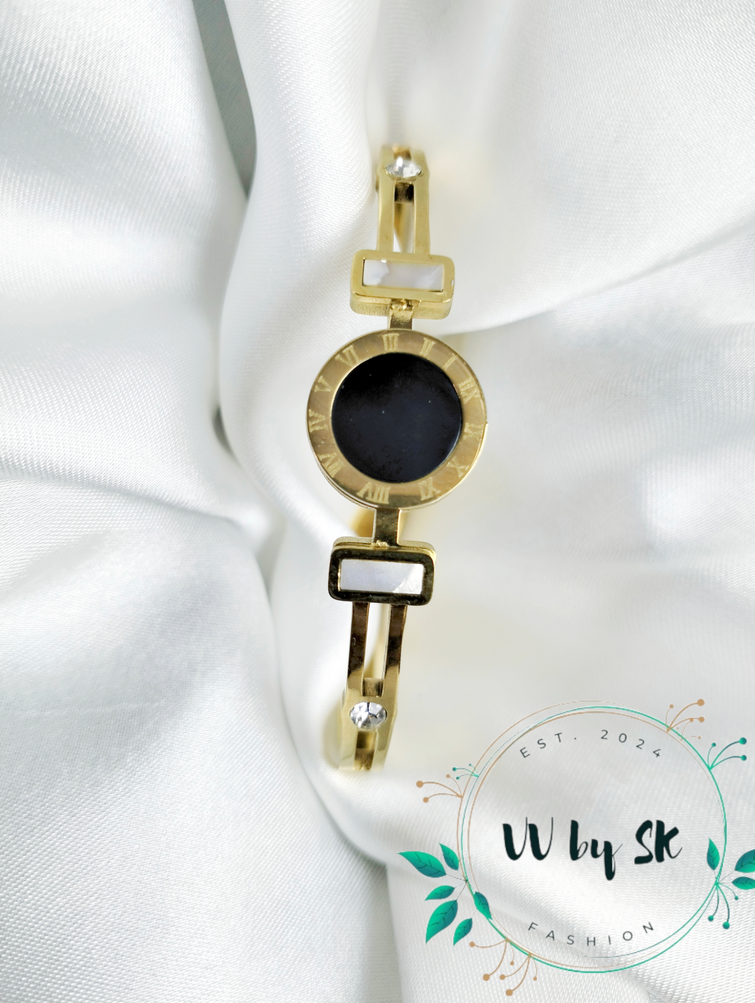 Black Roman Numerals Stainless Steel Handcuff | VV-24-BRA-61