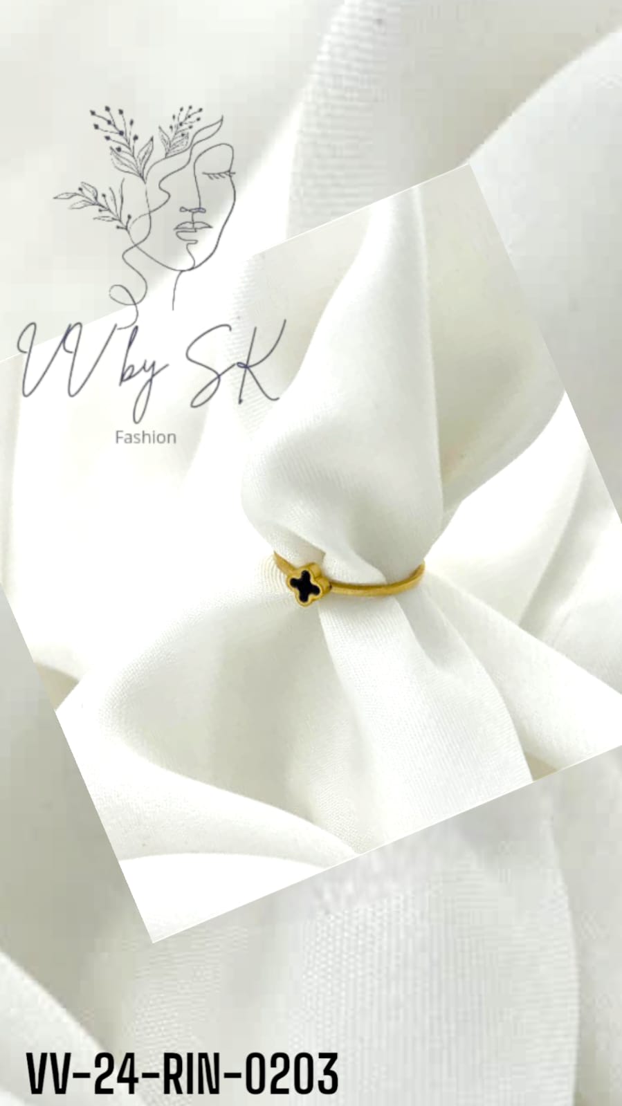 Clover Single Black Flower Ring | VV-24-RIN-0203
