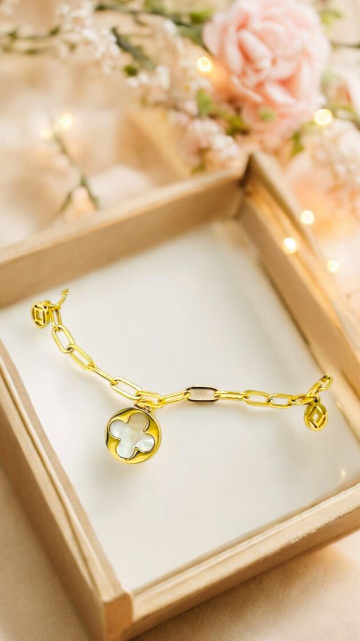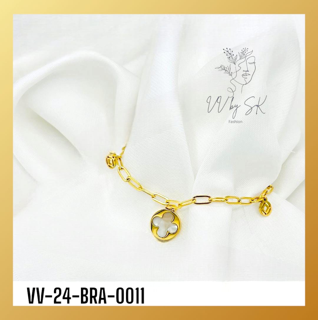 Gold Sunshine Bracelets 4 Leaf Clover Gold + White Adjustable | VV-24-BRA-0011