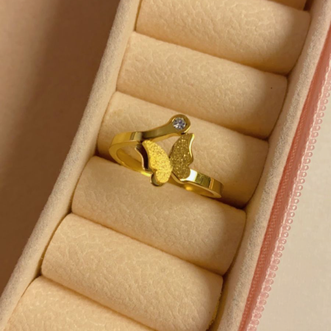 Golden Butterfly Ring with Single Stone | VV-24-RIN-0209